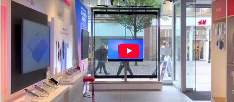 Pour répondre à ce défi, M-Cube a conçu et déployé un système LED transparent entièrement personnalisé dans plusieurs flagships Sky au Royaume-Uni (Édimbourg, Cardiff, Birmingham et Manchester).